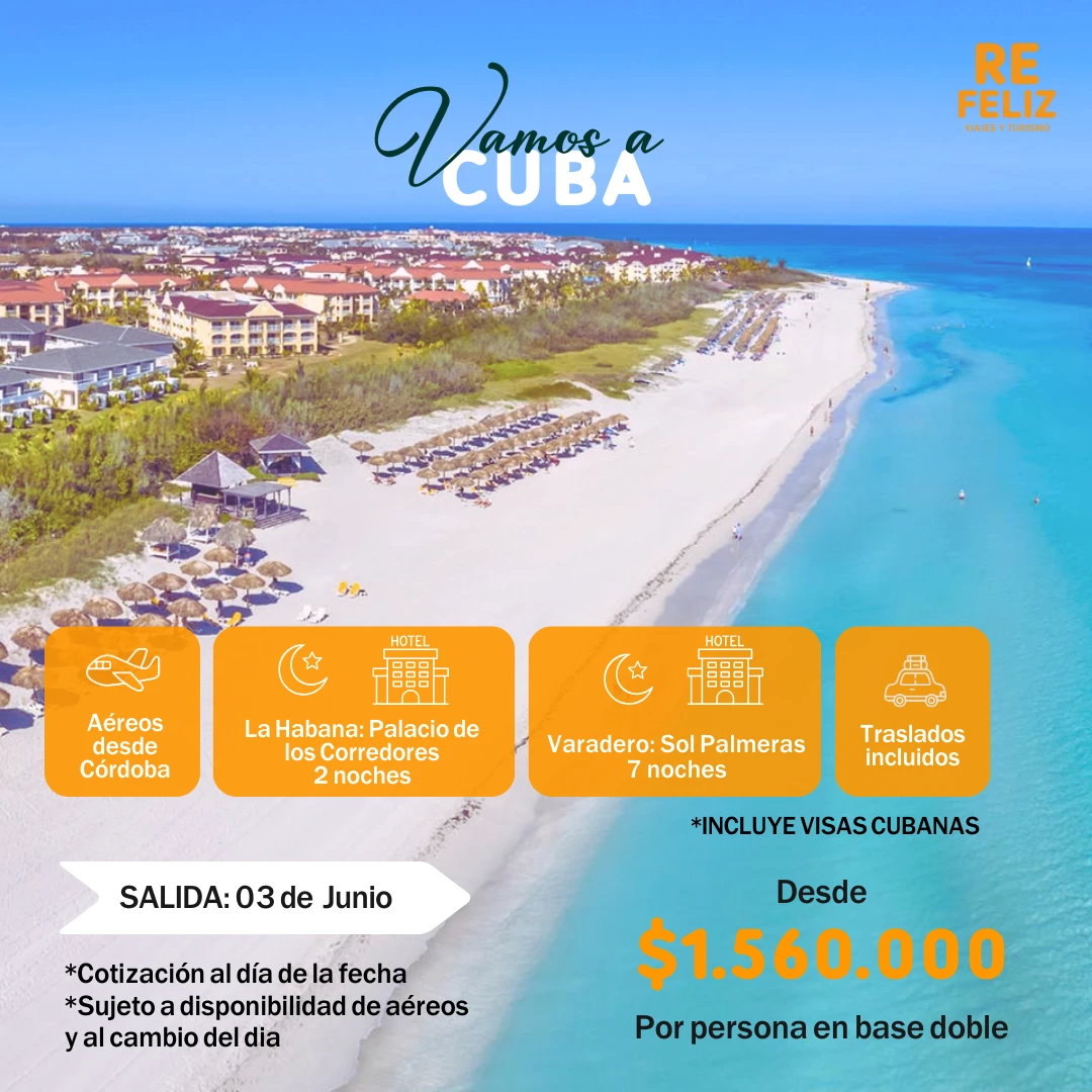 - 7 (siete) noches en Varadero con alojamiento en hotel: Sol Palmeras