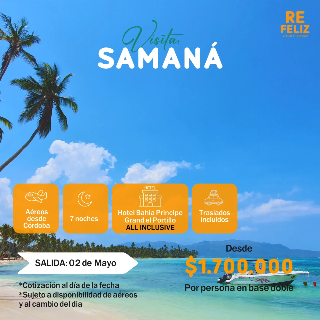 - 7 (siete) noches en Samaná (Rep. Dominicana) con alojamiento en hotel: Bahia Principe Grand el Portillo - ALL INCLUSIVE